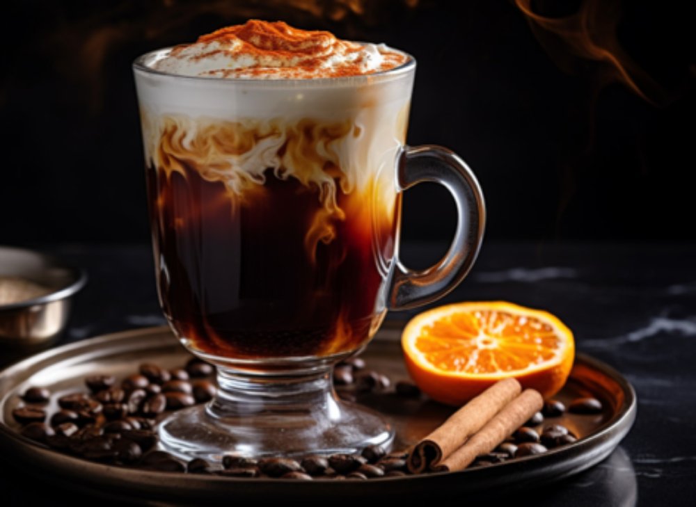 Smirnoff Vanilla, Frangelico, and Amaretto, topped with coffee, and whipped cream